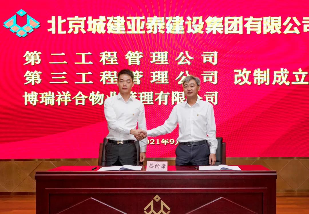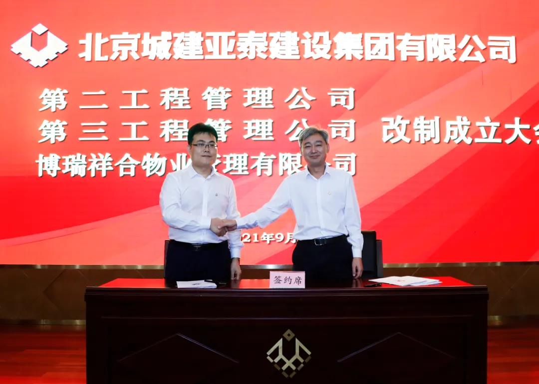 为贯彻落实“十四五”企业改革发展要求,进一步激发经营主体活力和发展内生动力,9月30日上午,第二工程管理公司、第三工程管理公司和北京博瑞祥合物业管理有限公司三家单位改制协议签订仪式在集团报告厅举行。